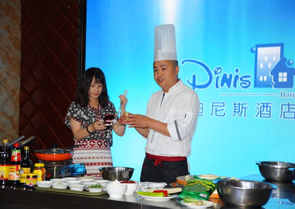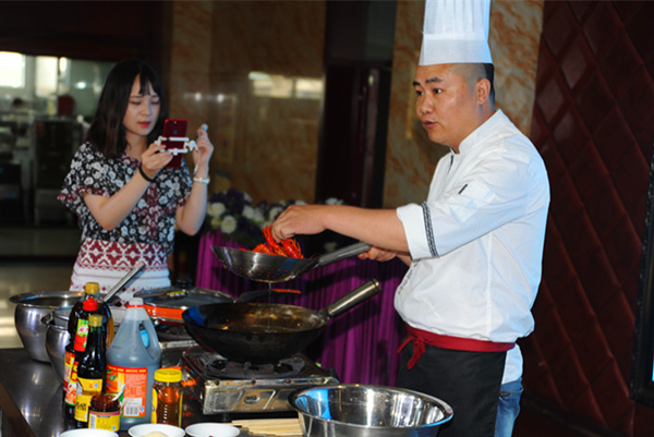 2017年5月18日上午,迪尼斯酒店開(kāi)元店聯(lián)合《洛陽(yáng)晚報(bào)》的“曬曬家常菜”欄目組,在酒店一樓大廳展開(kāi)了一場(chǎng)別開(kāi)生面的家常菜教學(xué)直播活動(dòng)。酒店行政總廚劉衛(wèi)平親自掌勺,為大家?guī)?lái)了烹飪油燜麻辣小龍蝦和脆皮茄子兩道家常菜的精彩表演。