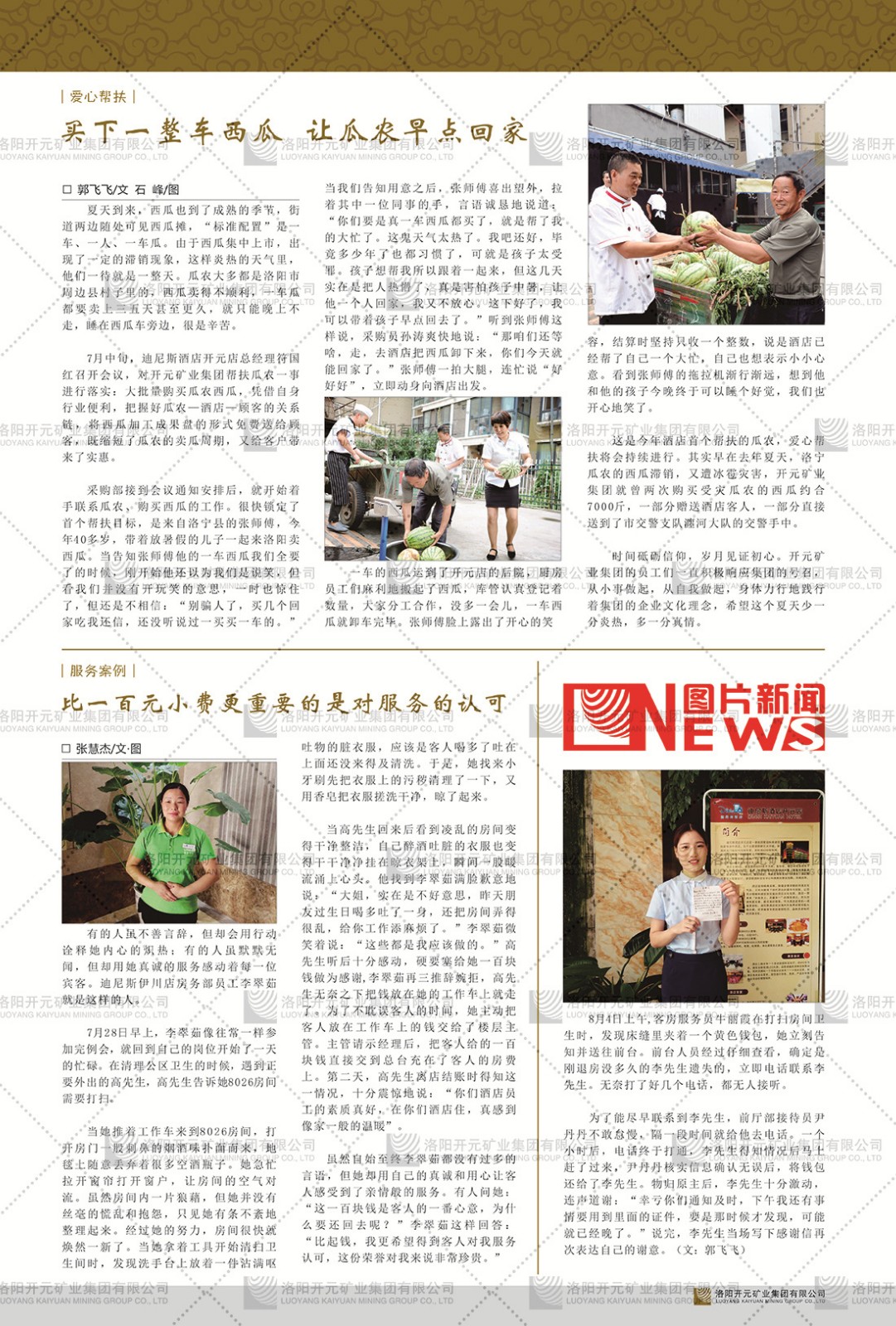 洛陽開元礦業(yè)集團有限公司簡介洛陽開元礦業(yè)集團有限公司,始成立于2006年,位于洛陽市開元大道269號。業(yè)務(wù)涉及有色金屬礦山開發(fā)、有色金屬礦產(chǎn)品購銷與進出口貿(mào)易、房地產(chǎn)開發(fā)、酒店服務(wù)與管理、新能源開發(fā)建設(shè)、企業(yè)管理與咨詢、資本投資等多個領(lǐng)域。集團旗下共有十余家全資子公司,主要包括貴州開元礦業(yè)有限公司、興??h銅鑫礦業(yè)有限公司、洛陽集美酒店管理有限公司、北京明峰資本有限公司、北京釋源文化傳媒有限公司、洛陽唐都房地產(chǎn)開發(fā)有限公司等。民建洛陽市委委員、企業(yè)委主任許明月是公司創(chuàng)始人,現(xiàn)任洛陽開元礦業(yè)集團有限公司董事長。在做好企業(yè)經(jīng)營的同時,開元集團始終不忘企業(yè)的社會責(zé)任和家國情懷,以突出的愛心公益事跡,開展了一系列公益慈善活動:“民建林”公益事業(yè)通過“思源基金”“幫幫公益”線上公益平臺,與眾多愛心人士籌措資金20余萬元;資助541名貧困大學(xué)生共計270余萬元,推進“數(shù)字助力——河南AI人才培養(yǎng)”;捐款10萬元,馳援京津冀、黑龍江洪水地質(zhì)災(zāi)害……公司于2017年底被洛陽市慈善總會評為“洛陽慈善風(fēng)云榜——十大愛心集體”。洛陽開元礦業(yè)集團有限公司秉承持續(xù)發(fā)展理念,憑借多年來良好的企業(yè)信譽與經(jīng)營業(yè)績,與全國多家企業(yè)建立了良好合作關(guān)系,受到社會各界的一致好評,多次榮獲“納稅標(biāo)兵”、“先進企業(yè)”、“招商引資模范企業(yè)”等榮譽稱號。公司本著“以人為本,誠信經(jīng)營,多元發(fā)展,和諧雙贏”的經(jīng)營宗旨,積極回報社會,以礦山開發(fā)、礦產(chǎn)品購銷、進出口貿(mào)易為依托,逐步擴大國內(nèi)礦山企業(yè)投資規(guī)模,著力打造集礦產(chǎn)品開發(fā)與購銷、進出口貿(mào)易、資本投資、酒店服務(wù)與管理等為一體,持續(xù)健康發(fā)展的綜合性、國際化企業(yè)集團。