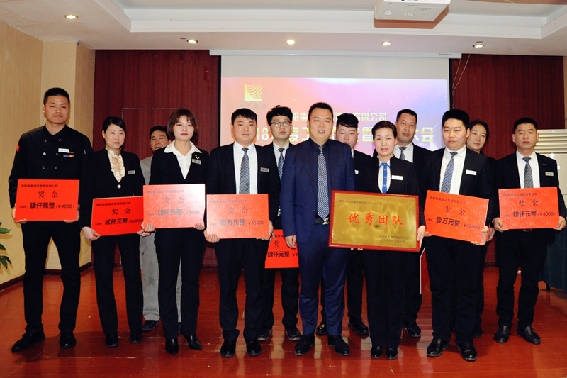 總經(jīng)理助理叢萬通宣讀了2018年集美酒店管理公司表彰決定,董事長許明月親自為伊川店管理團隊頒獎,并與獲獎人員親切合影留念。先進代表張燦國、白霜、史麗娟上臺發(fā)言,紛紛表示感謝集團提供的平臺,將在今后的工作中牢記使命,找準(zhǔn)酒店發(fā)展的關(guān)鍵點,創(chuàng)新工作思路,為公司業(yè)績增加、個人價值提升做出更大的努力。